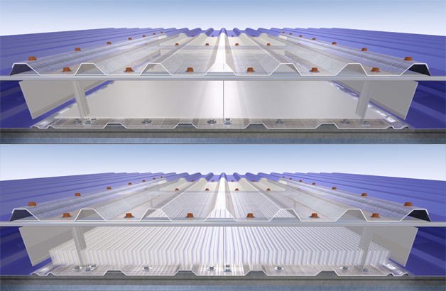 A rooflight comprises of three key elements– the internal liner sheet, the insulation layer, and the external weather sheet. The selected components making up the final assembly, not only influence light transmission and thermal performance, but have a part to play in the embodied carbon