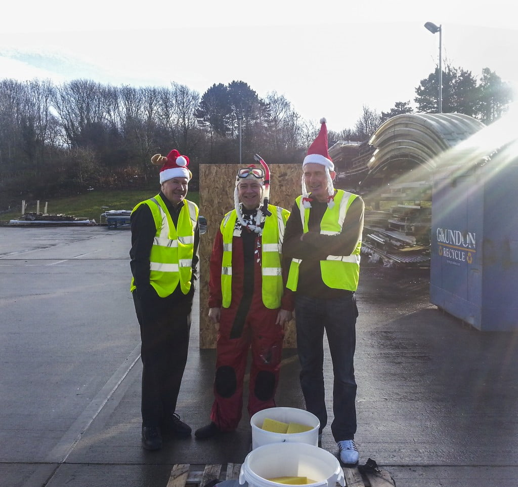 One sponge hits its target! Our brave Directors - Ian Weakford, Nick Adams and Rob Hupfield took to the stocks in the Danelaw yard on Thursday 19th December to get a good old fashioned soaking, all in the name of charity. At 50p
