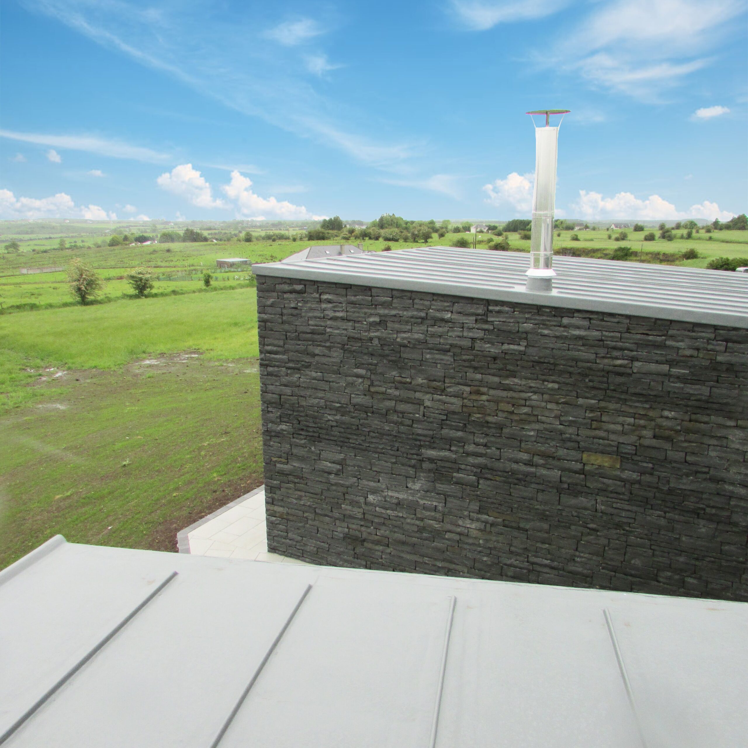 The original design had been for a “standing seam” metal clad roof, but it was decided that the pitch was too low for a metal finish and with so many joints on such an exposed site it was deemed to be potentially prone to leaks, so the Dryseal GRP waterproofing membrane system was chosen.