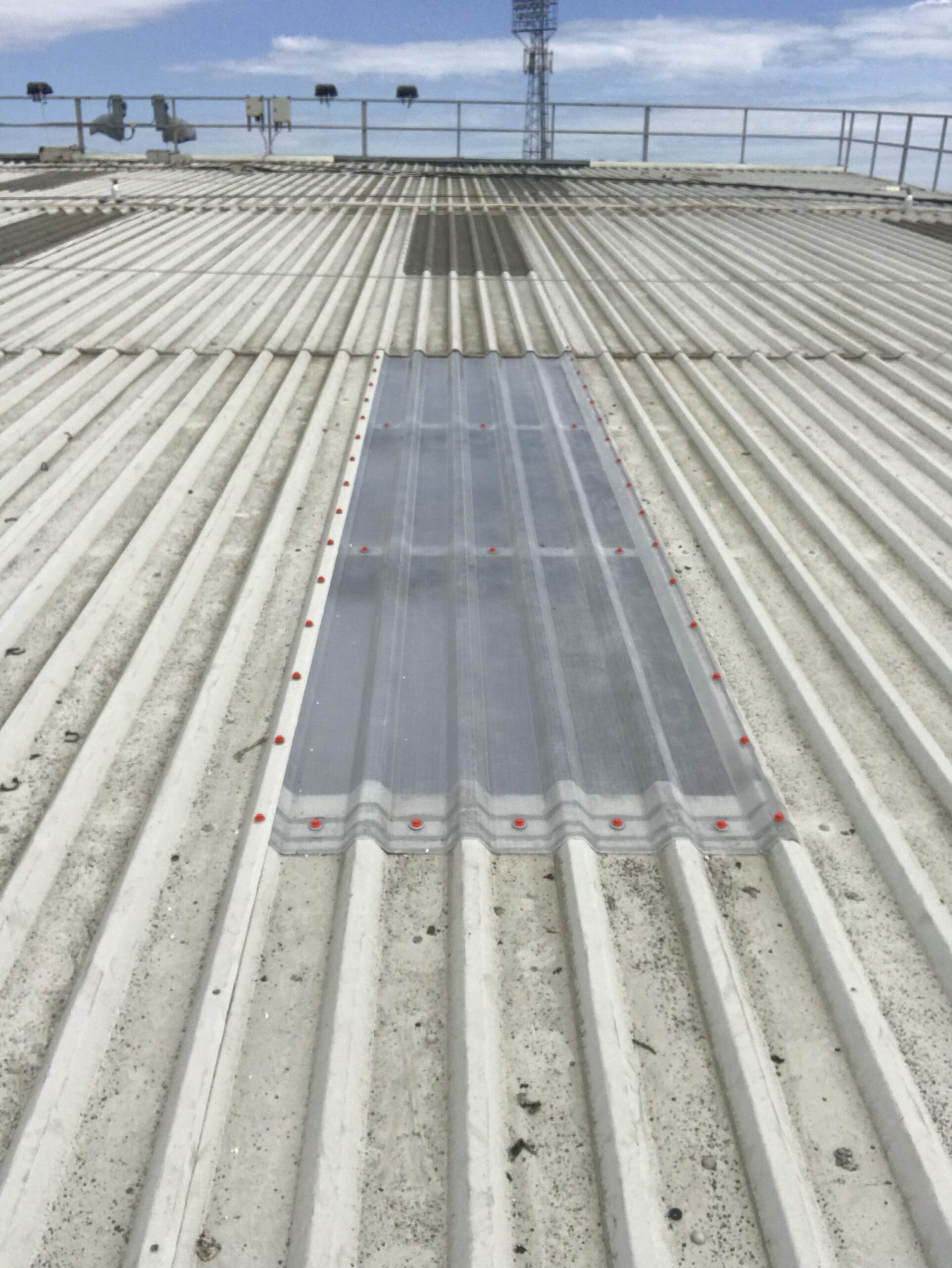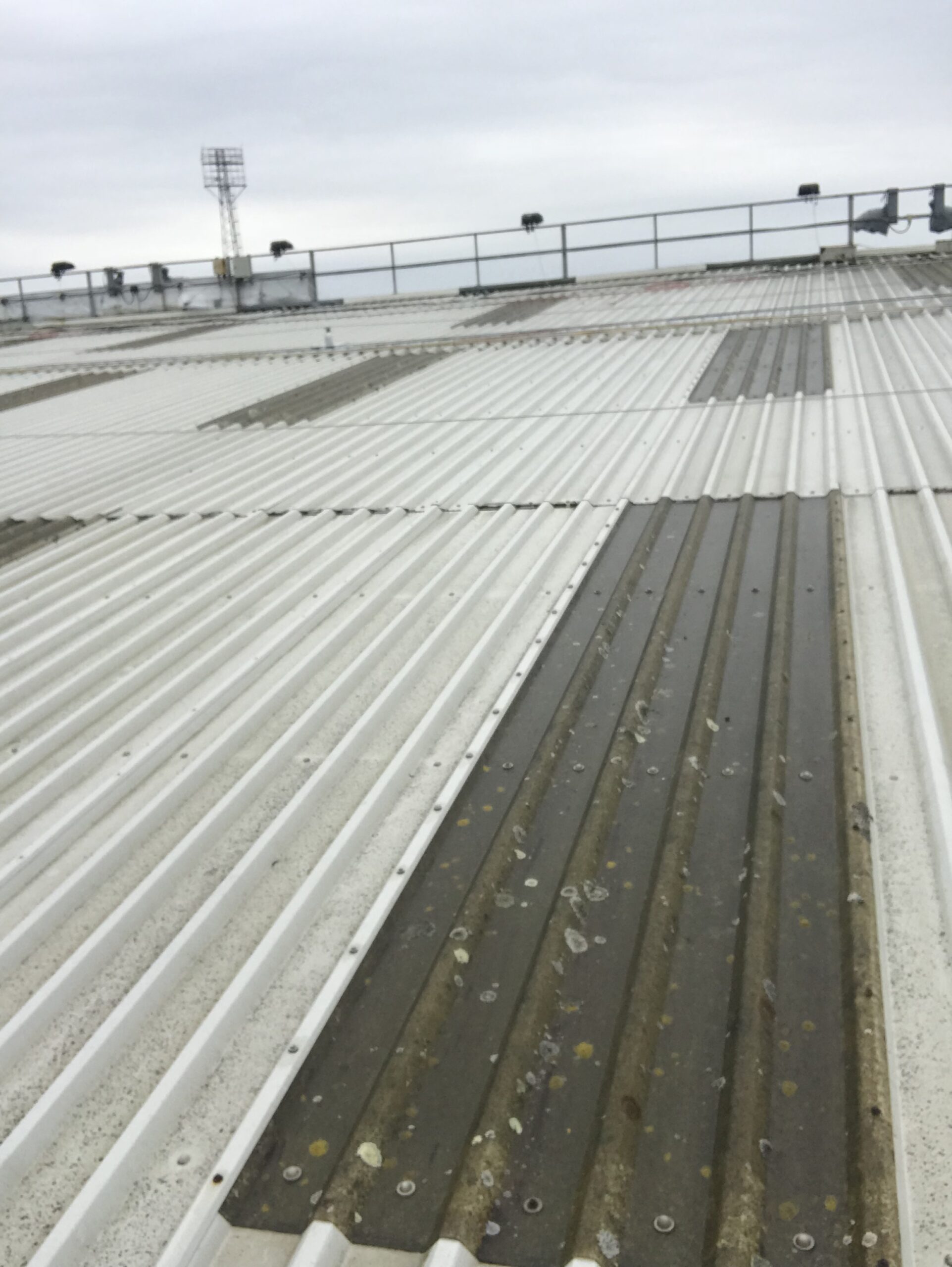 Other elements to this refurbishment project included Giromax end lap treatment, repairing the original roof sheets, renewal of failing roof flashings and the installation of a new safety line.